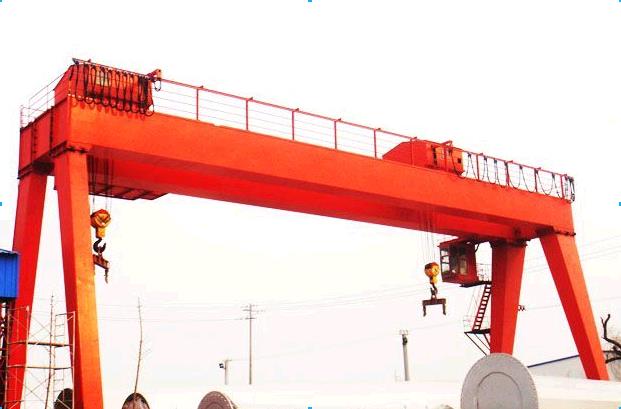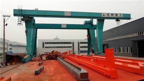 門式起重機是橋式起重機的一種變形。主要用于室外的貨場、料場貨、散貨的裝卸作業(yè)。它的金屬結構像門形框架,承載主梁下安裝兩條支腳,可以直接在地面的軌道上行走,主梁兩端可以具有外伸懸臂梁。門式起重機具有場地利用率高、作業(yè)范圍大、適應面廣、通用性強等特點,在港口貨場得到廣泛使用。